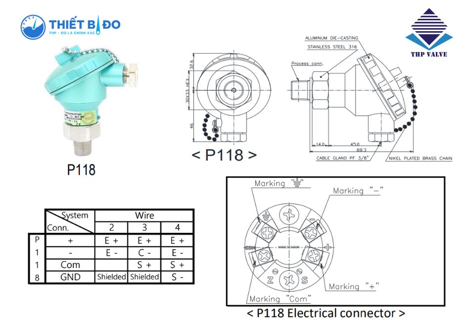 Thông số sản phẩm cảm biến áp suất Wise P118