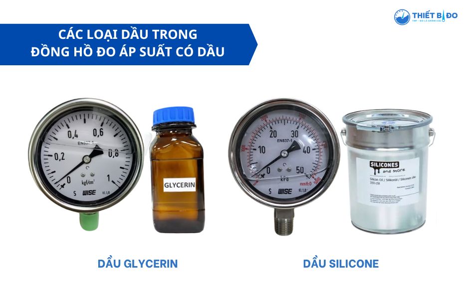 Hiện trên thị trường có 2 loại dầu chính thường dùng trong đồng hồ đo áp suất dầu và mỗi loại dầu phù hợp với từng điều kiện vận hành cũng như môi trường sử dụng khác nhau, cụ thể như: