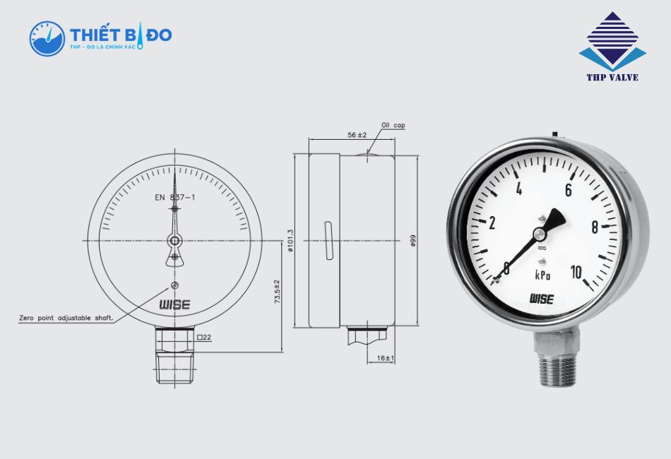 Đồng hồ áp suất P423 Wise