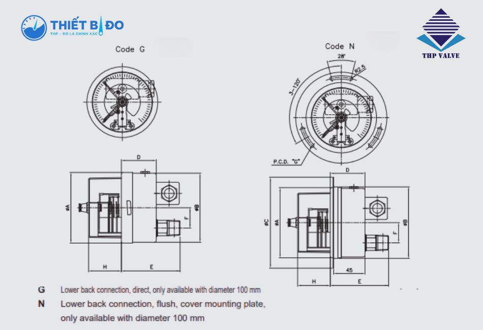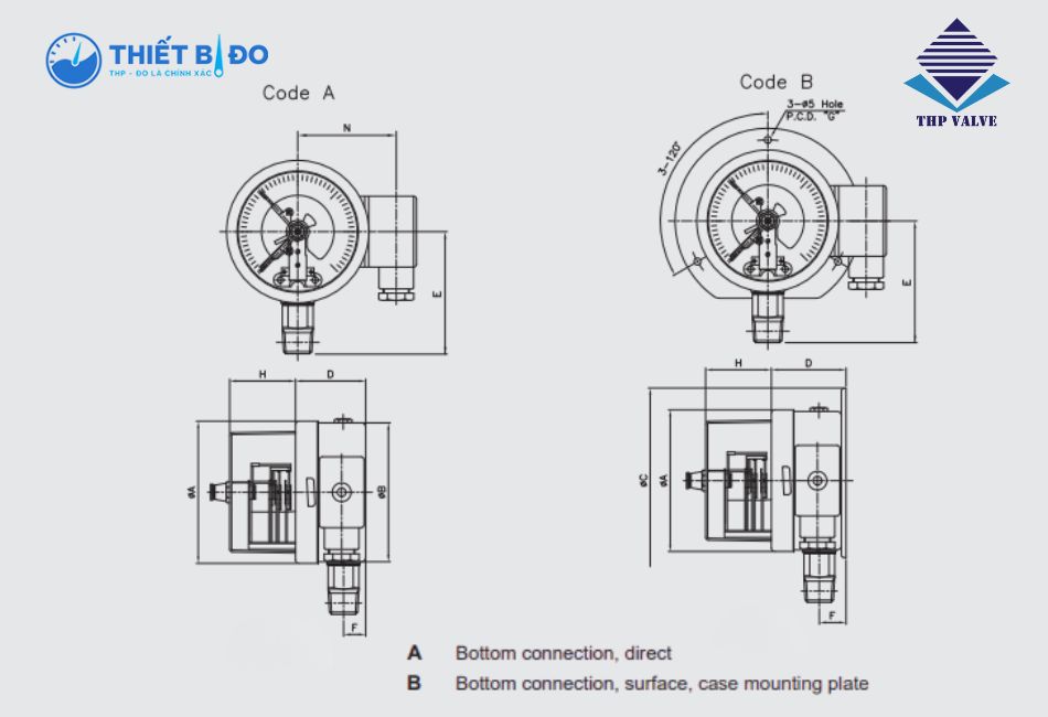 | Chân kết nối áp suất | Thép không gỉ – Inox 316 |