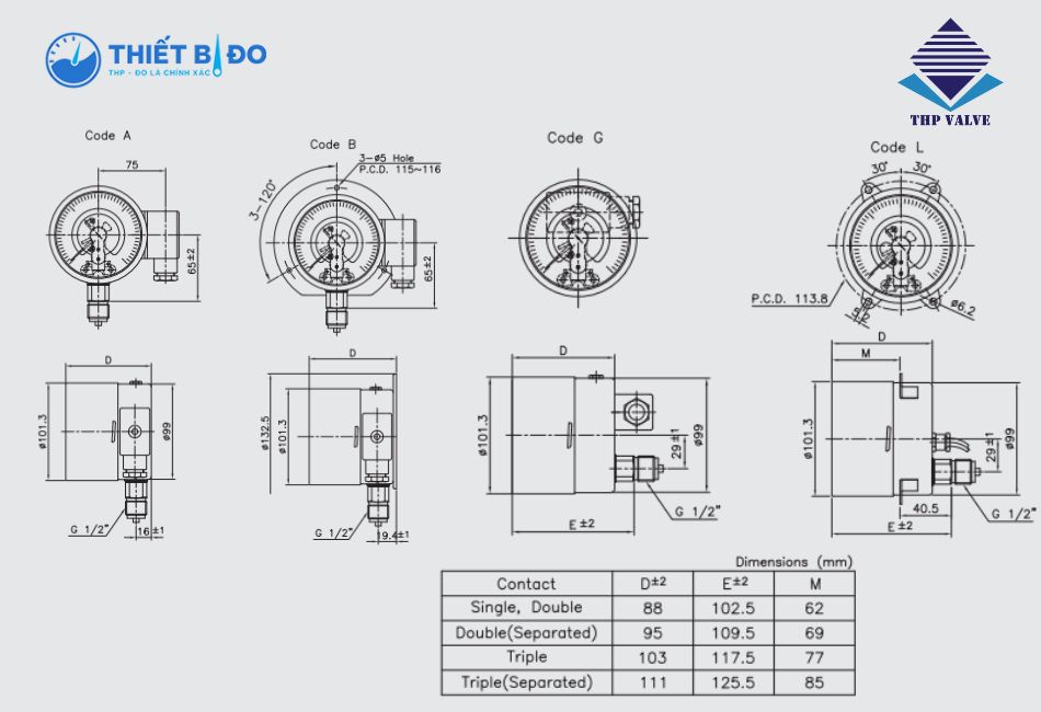 | Chân kết nối áp suất | Thép không gỉ – Inox 316 |