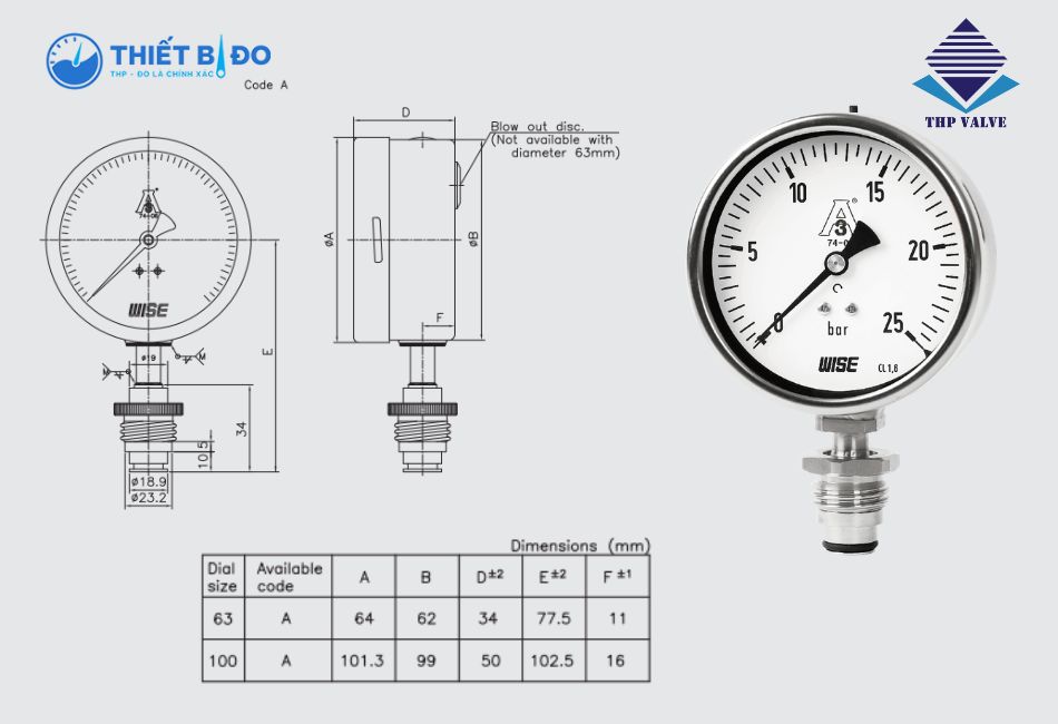 Đồng hồ áp suất P753S Wise