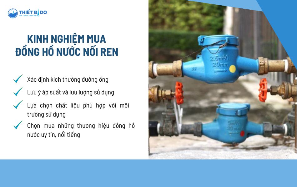 Muốn đồng hồ đo nước nối ren hoạt động ổn định, hiệu quả và đem tới tuổi thọ vận hành lâu dài thì quá trình lựa chọn sản phẩm cần thật kỹ lưỡng và đáp ứng nhu cầu sử dụng. Sau đây là một số lưu ý trong quá trình chọn mua: